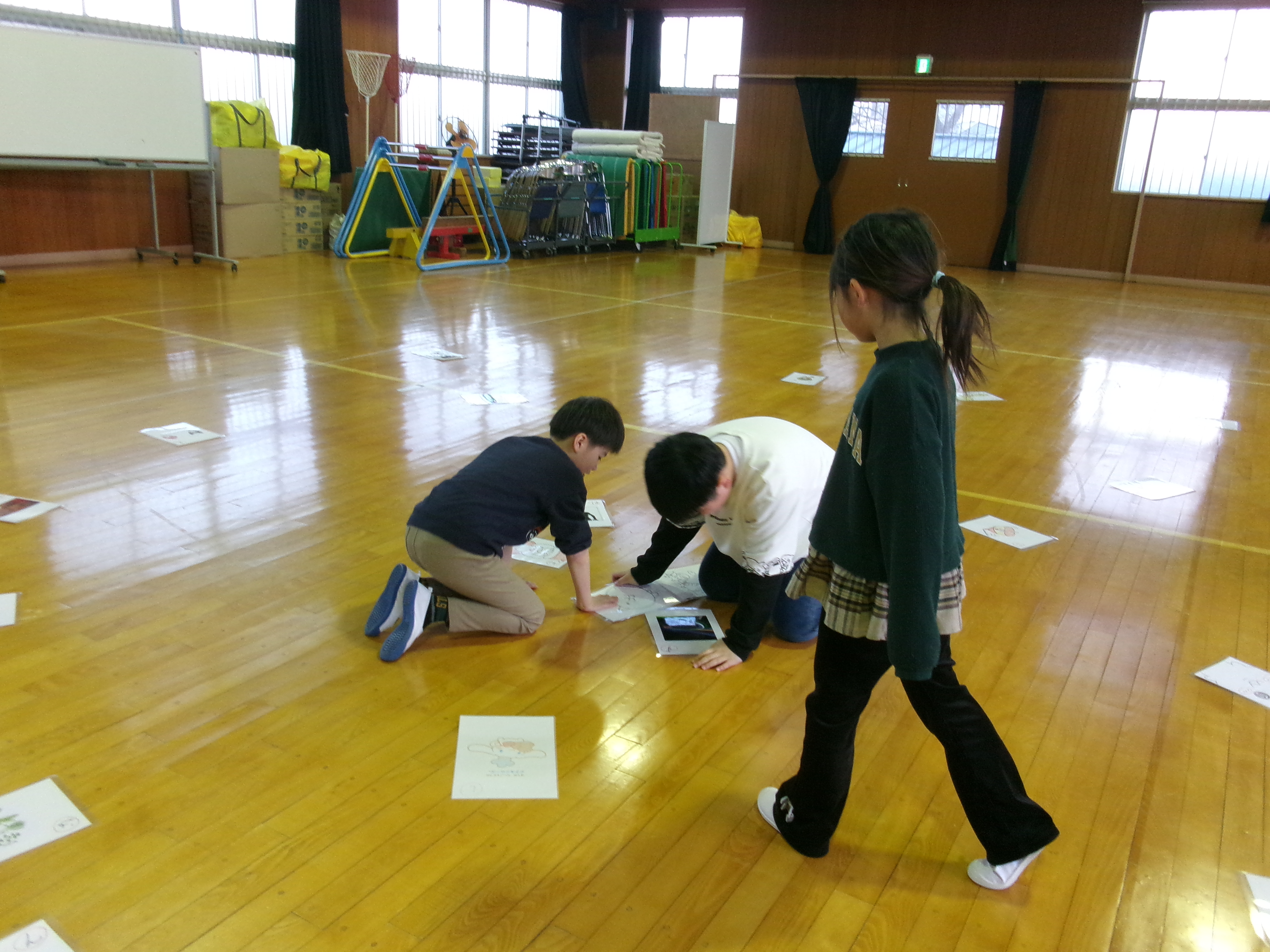 チームで競ったり、体育館全体を使って巨大かるたを探して取ったり、