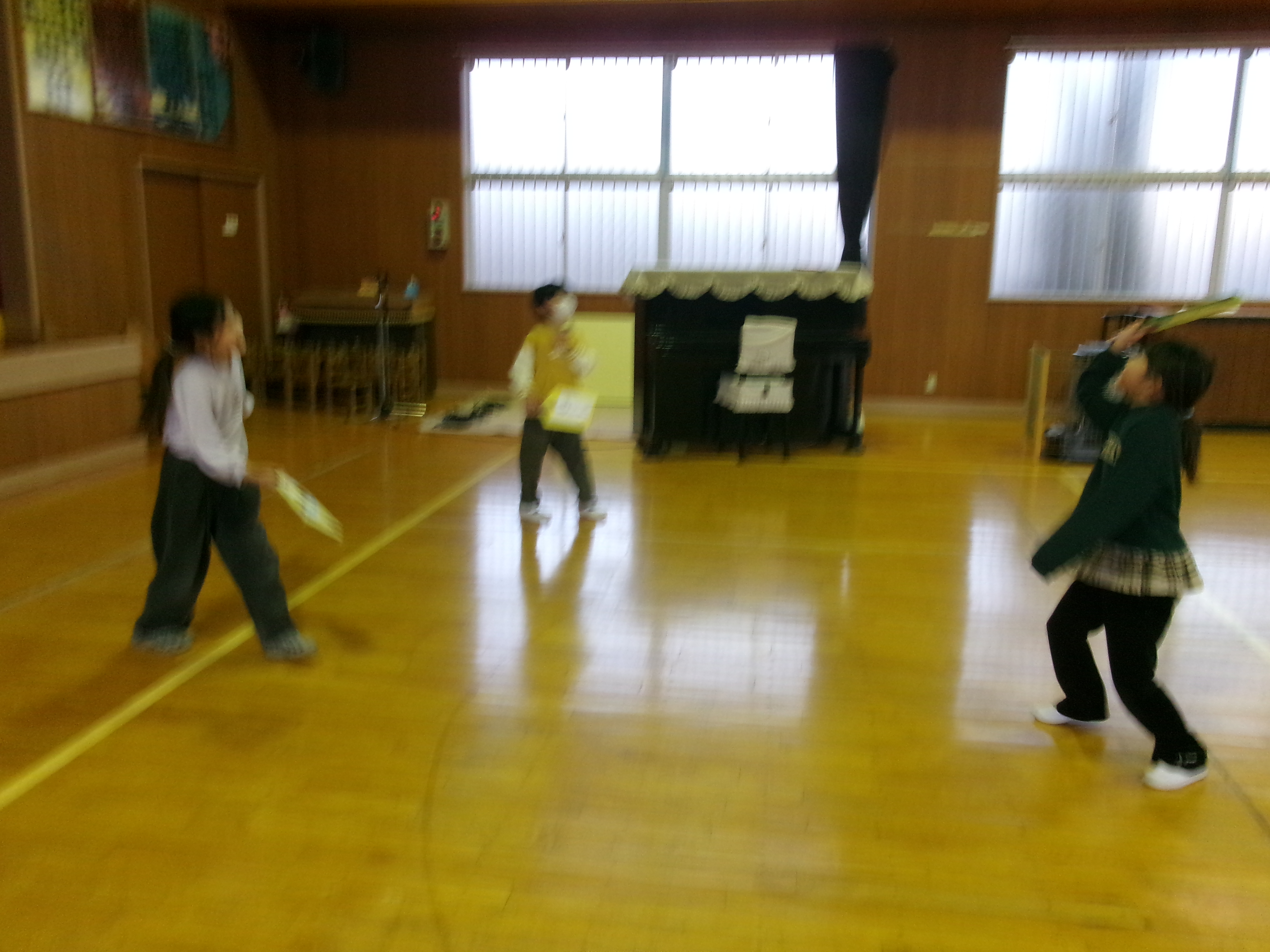 冬休み中に自由に作っていた羽子板を使って、何回続けられるかを