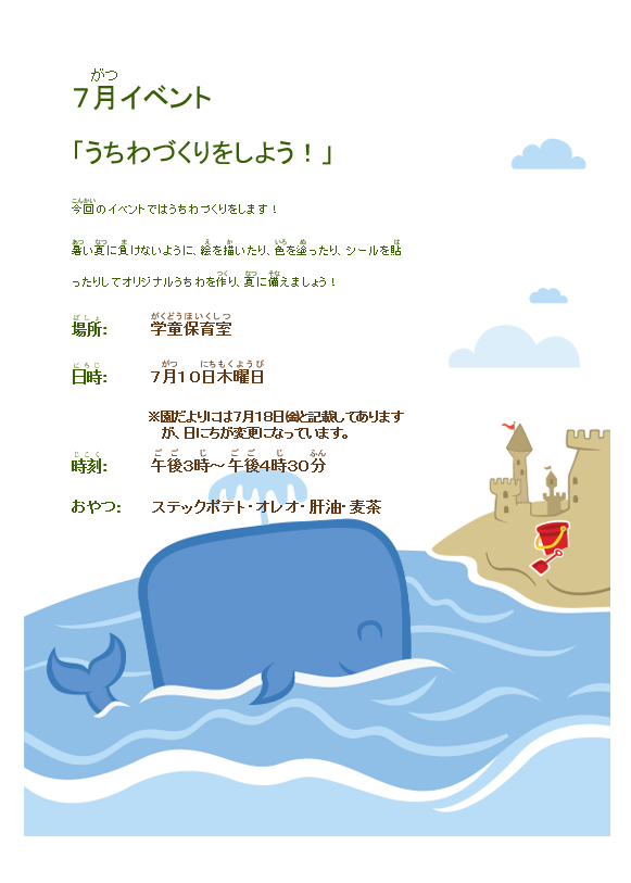 7月のイベントは「うちわづくりをしよう!」です!